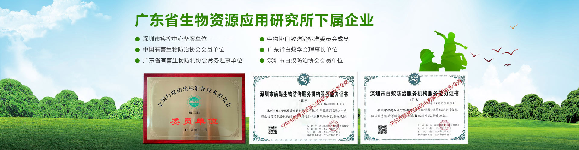 專注于徹底根治、防治結(jié)合,售后跟蹤服務(wù),專業(yè)服務(wù)工程師有豐富實戰(zhàn)經(jīng)驗超過十年。持有專業(yè)資格證書認(rèn)證:“有害生物防制服務(wù)機(jī)構(gòu)服務(wù)能力證書B級”、“白蟻防治服務(wù)機(jī)構(gòu)服務(wù)能力證書B級”所有員工持有“深圳市白蟻防治上崗證”和“深圳市除蟲滅鼠上崗證”,雙資格證上崗服務(wù)。榮獲過:“優(yōu)質(zhì)服務(wù)示范單位”、“白蟻防治服務(wù)信譽(yù)AAA級單位”、“深圳市白蟻防治先進(jìn)單位”、“深圳市十大白蟻防治品牌”、“深圳市殺蟲公司”、“深圳市消殺公司”先進(jìn)單位等榮譽(yù)。